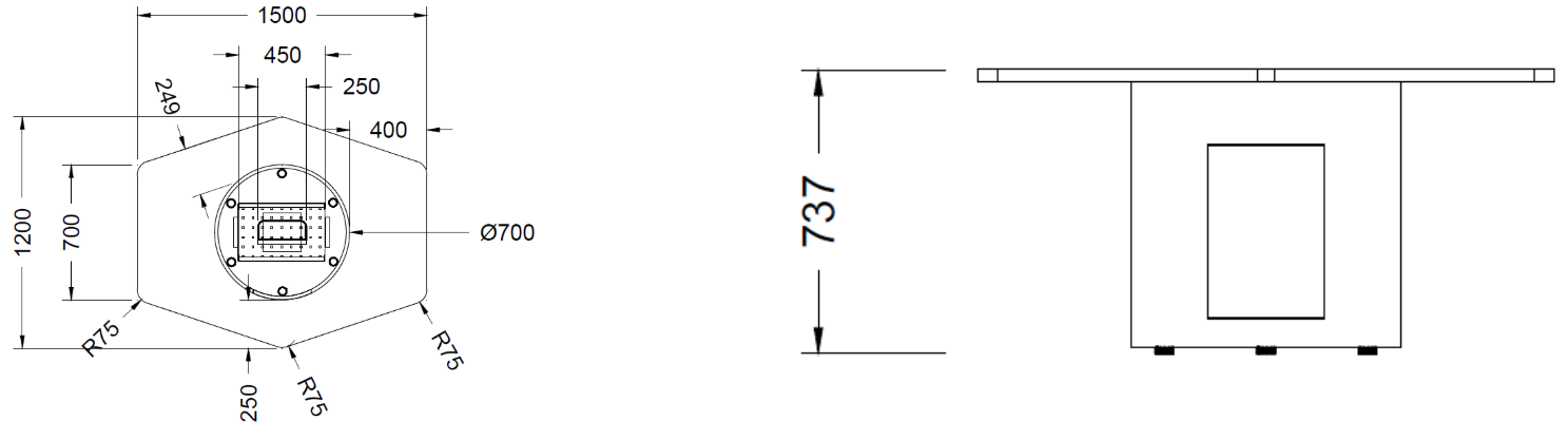1500W x (1000DA x 700DB) x 737H