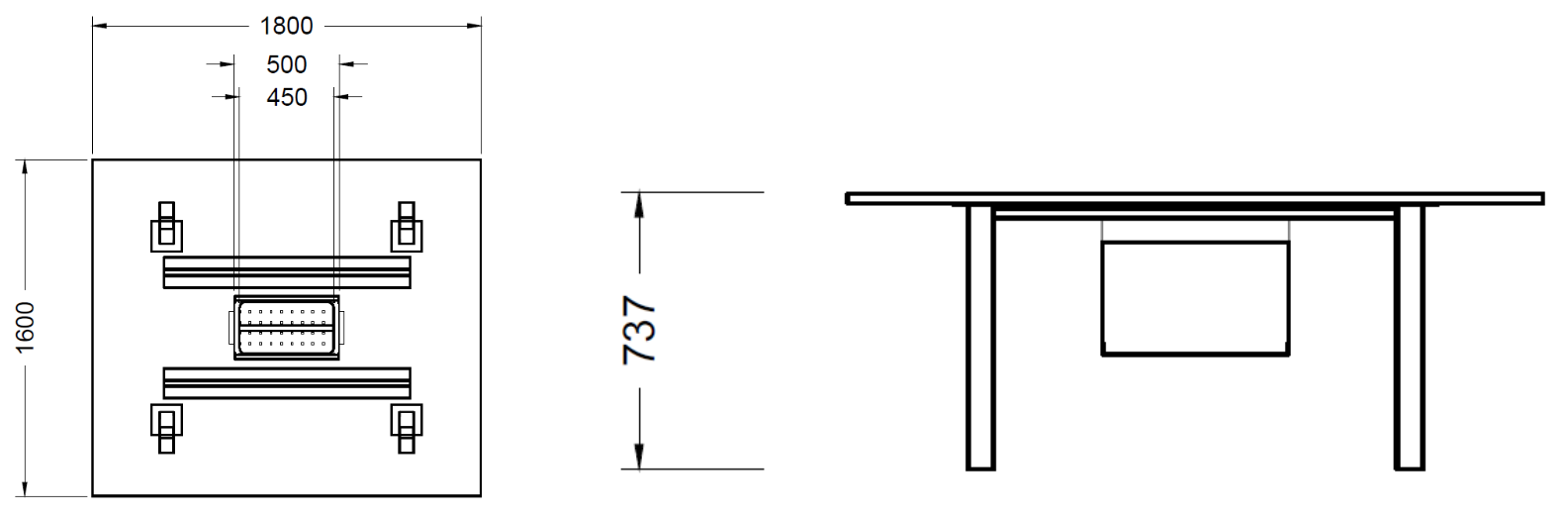 Laminate double sided flip-up, wire run through workshop leg & cable tray