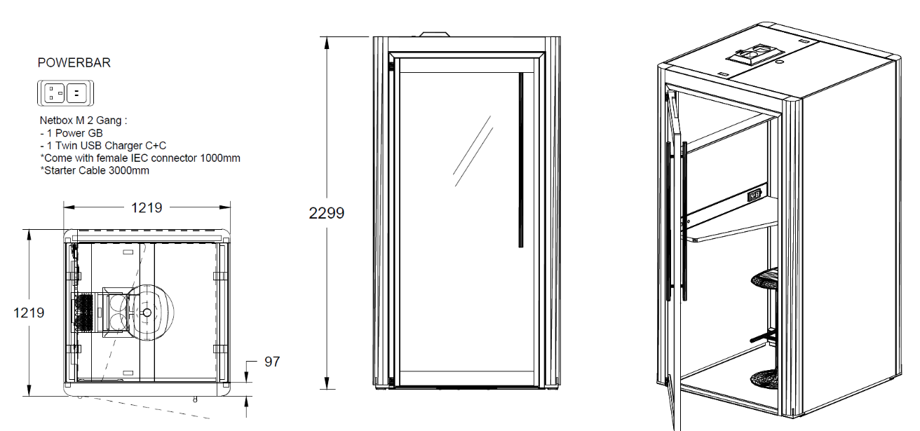 Interior Upper Fascias, Task Light, Ventilation Intake, Ventilation Exhaust, Sound Proofing, Semi suspended worksurface (bar height).