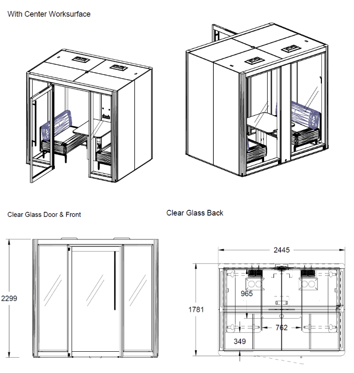 Exterior: Framed clear glass pivot door with ladder pull handle, Round corner trim, Laminate exterior side fascia, Clear glass door, front & back